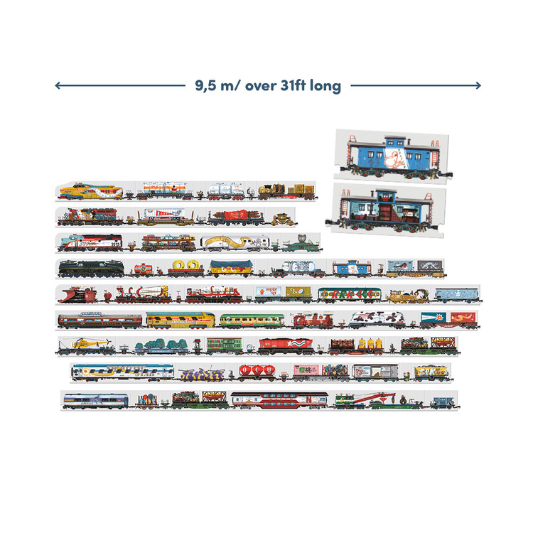 기차칸마다 다른 디자인과 화물, 다양한 이야기 요소 포함