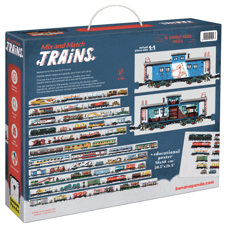 구성: 108개의 조각 및 양면 요소 56개 + 기차 포스터 1장