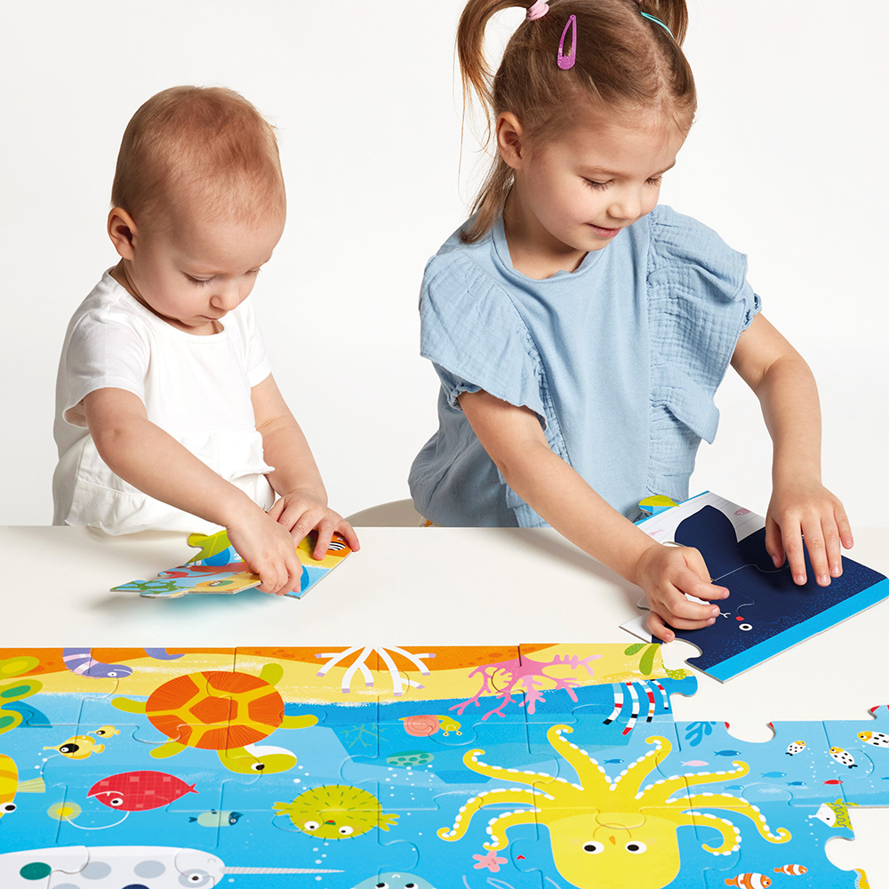 길게 이어지는 퍼즐을 완성하면 귀여운 바다 생물 친구들이 바닷속을 누비는 모습을 볼 수 있어요. 퍼즐 하나하나를 맞추며 상상력도 쑥쑥 자라납니다.